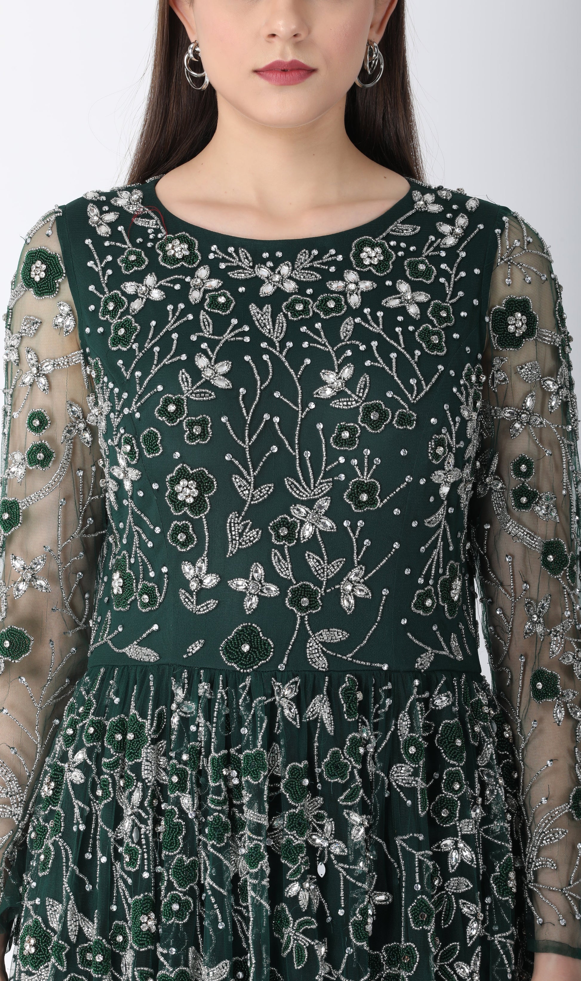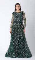 Beaded Aline Dress Dark Green