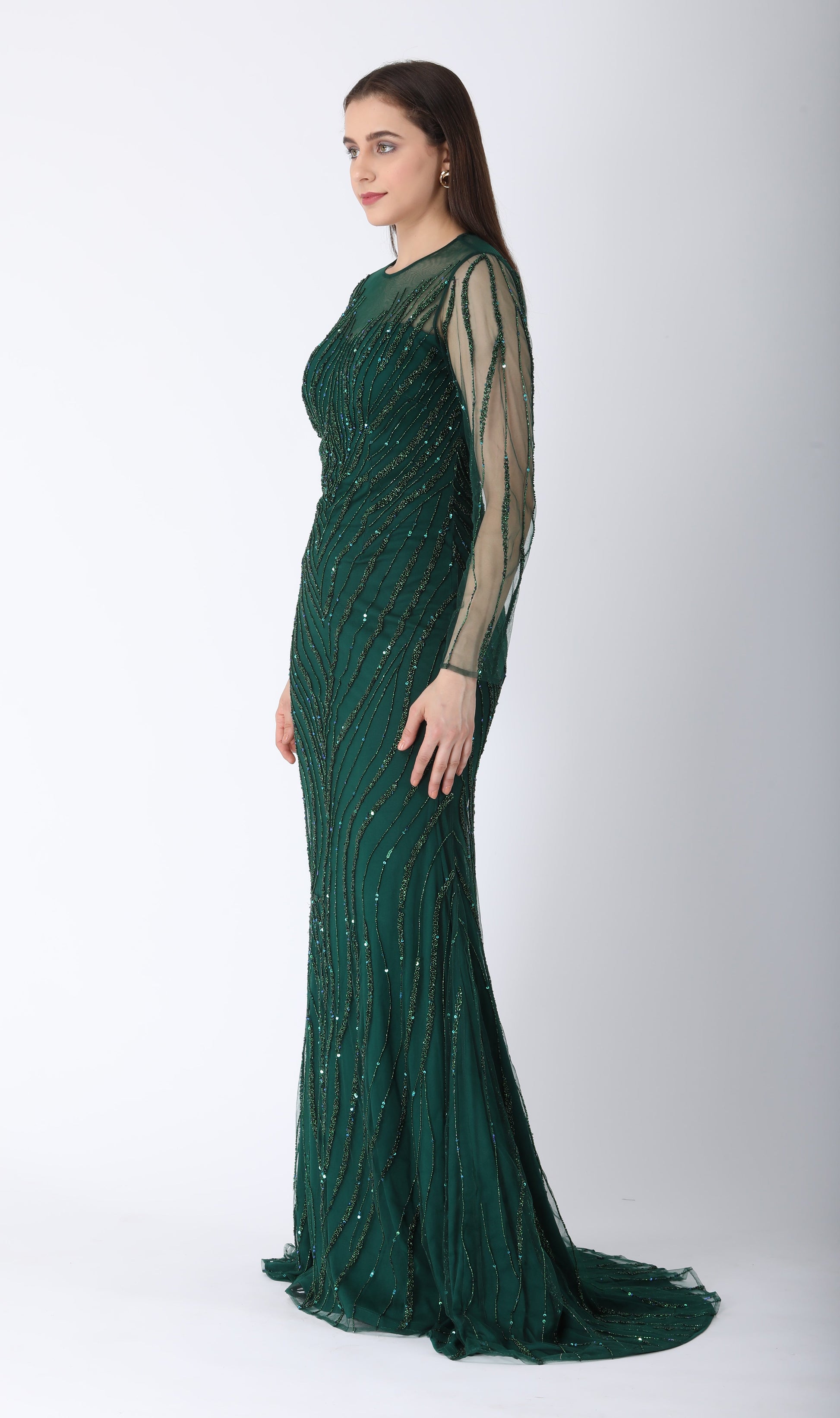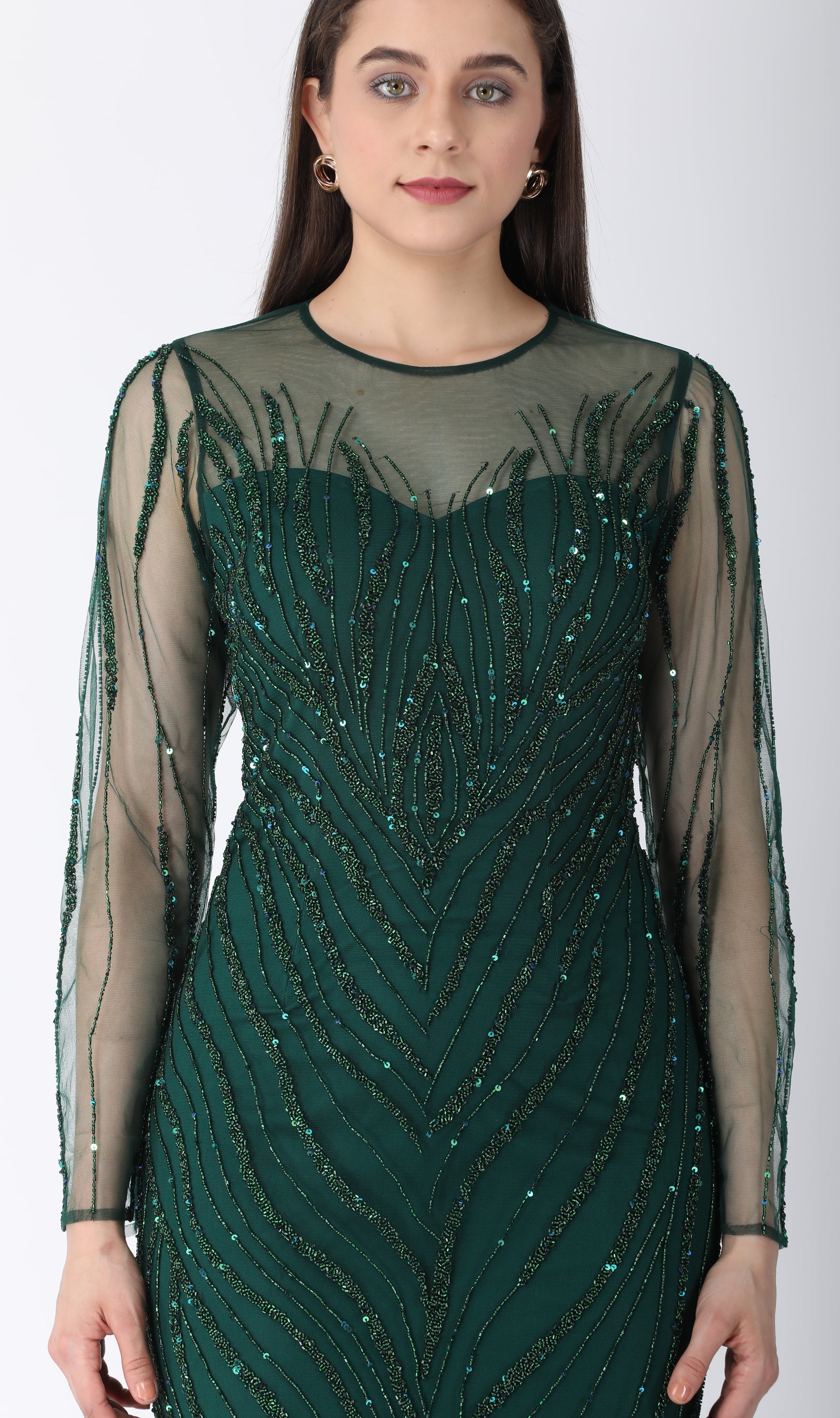 Beaded dress in dark green