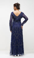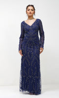 Den figursyede silhuet kombineret med den dybe V-udskæring giver et feminint og sofistikeret udtryk, mens de lange transparente ærmer tilfører kjolen et romantisk touch. Med en længde på ca. 148 cm er kjolen perfekt til galla, bryllup, studenterfest eller andre store begivenheder, hvor du vil udstråle luksus og tidløs elegance.